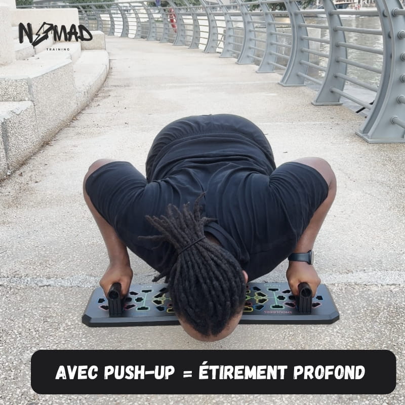 Pompes larges, serrées, classiques, elles y sont toutes. Meilleure stabilité et un meilleur confort poignets sur tes pompes avancées comme les Pike, les Handstand... bref, t'as tout pour ENFIN plier le GAME !